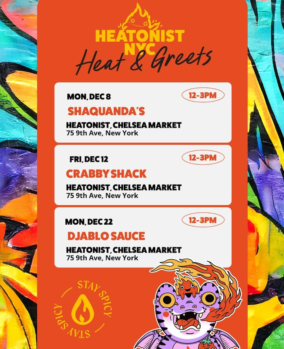 They're back! Meet your favorite sauce maker, sample new flavors and spicy snacks with us at our Chelsea Market Outpost from 12-3pm.