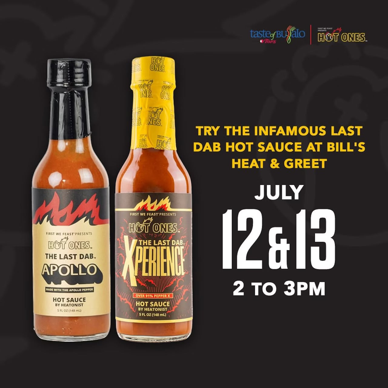 Try Hot Ones' new Buffalo hot sauce on the field where the Buffalo Bills play! We'll be serving up wings sauced with Hot Ones Buffalo sauce and Los Calientes Rojo, with the option to add a dab of The Last Dab if you dare. Stop by, eat some wings and say hi to Hot Ones' favorite videographer and Buffalo native, Camera Guy Bill!