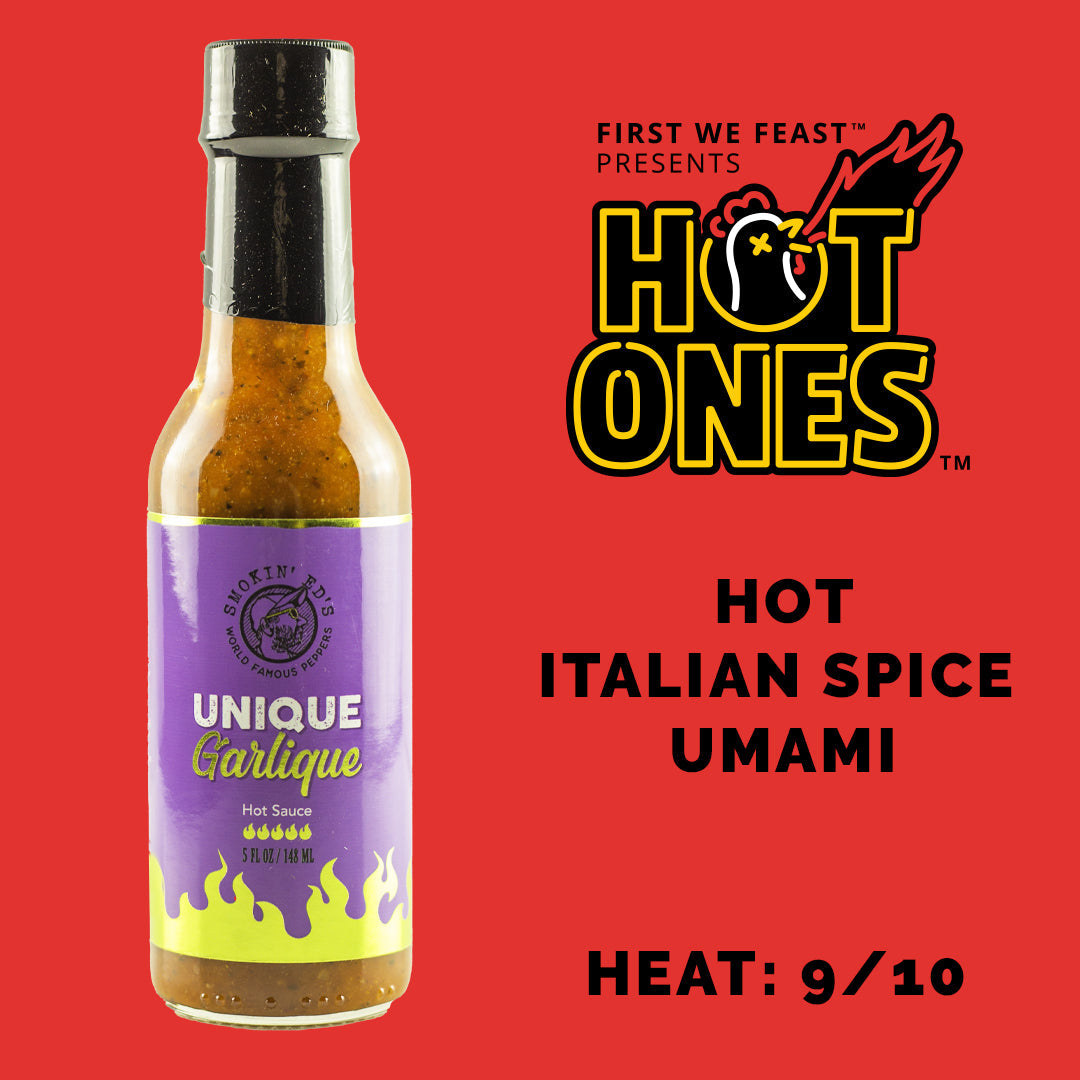 This umami bomb comes from the king of capsaicin himself, Smokin’ Ed Currie! Inspired by Smokin’ Ed’s Italian roots, Unique Garique delivers all the notes of Italian seasoning before super hot chilis like Ed’s famous Carolina Reaper, Scorpion chili and 7-Pot Primo peppers have you tearing up like you’re at a tragic opera.