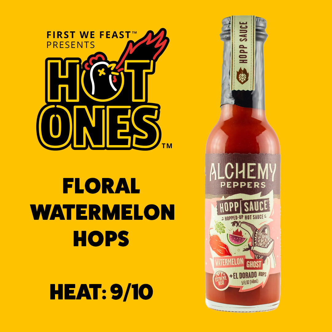 A newcomer to the Hot Ones fam, Alchemy Peppers created a one-of-a-kind spicy elixir the likes of which we’ve never seen in a wing sauce before. It’s got hops. It’s got watermelon. And it has enough ghost pepper to keep you on your toes.