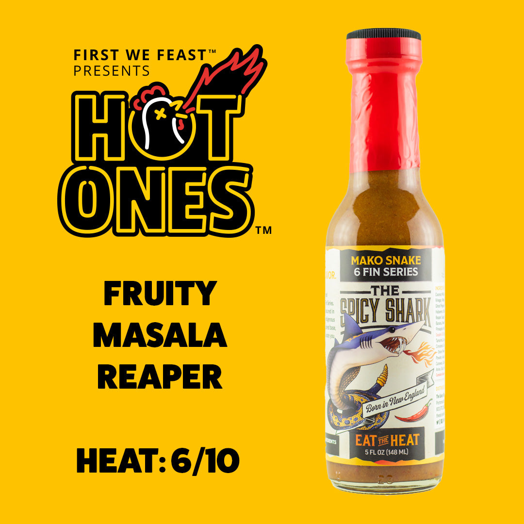 And in the back half we kicked things off with something serious. It's the spicy shark here in the sixth spot. The Spicy Shark’s Mako Snake sauce brings masala vibes with the 6 c’s: coconut, cumin, cinnamon, cardamom, coriander and caraway. But this sauce right here is not just a culinary delight - you have ghost peppers in here. You have Carolina Reaper in here. This is a very hot number six. In the words of Seth Rogen, “not famous person hot, just hot-hot” and it lets our guests know right away that we are not messing around here in the back half. A hot number six that goes into a hot number seven…