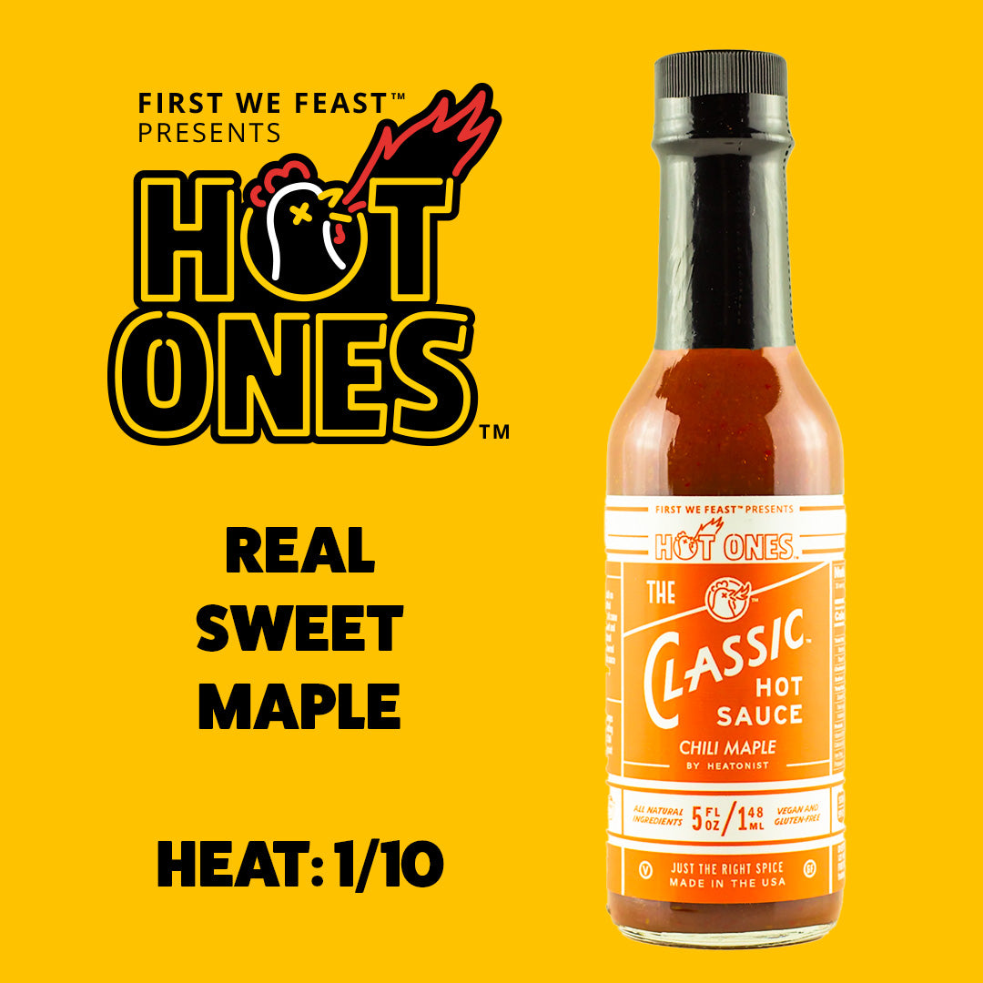Back in Season 19, Hot Ones The Classic hot sauce got a sweet makeover with the addition of real maple syrup to its tangy base of apple cider vinegar and Fresno chilis. It’s been a hit ever since, so why mess with magic?